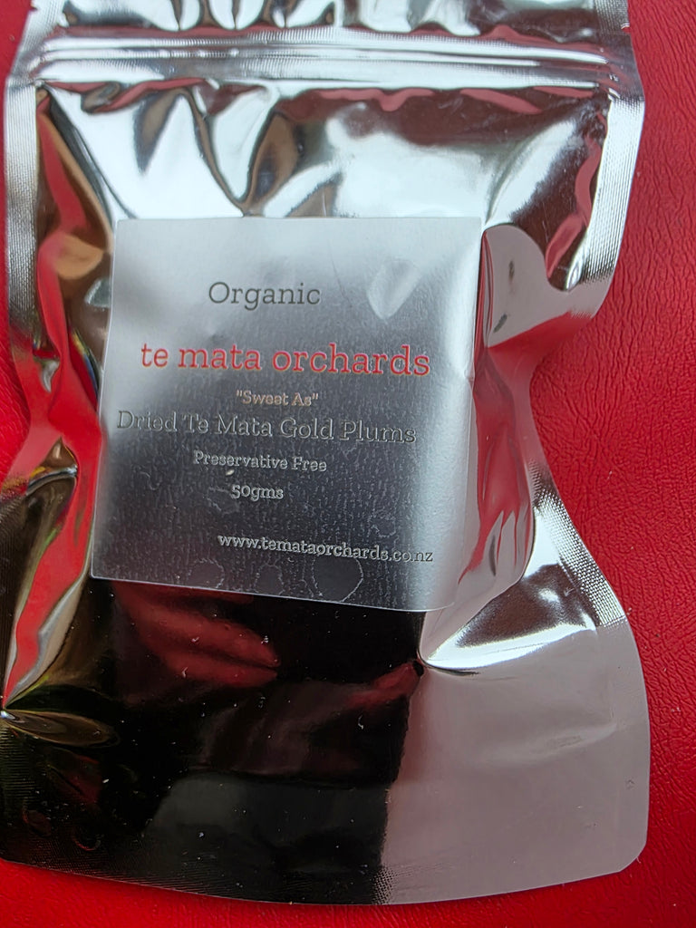 Te Mata gold is our own variety of plum. When dried it tastes a bit like dried apricot but not as sweet. c Because the fruit was soft at harvest the plums did not slice well so it was dried as fruit leather pieces. Ideal for snacks, muesli or similar.